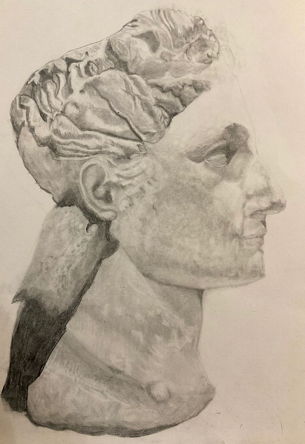 Pencil and soft pastel artwork inspired by Karl Blossfeltd’s photography, by Allie