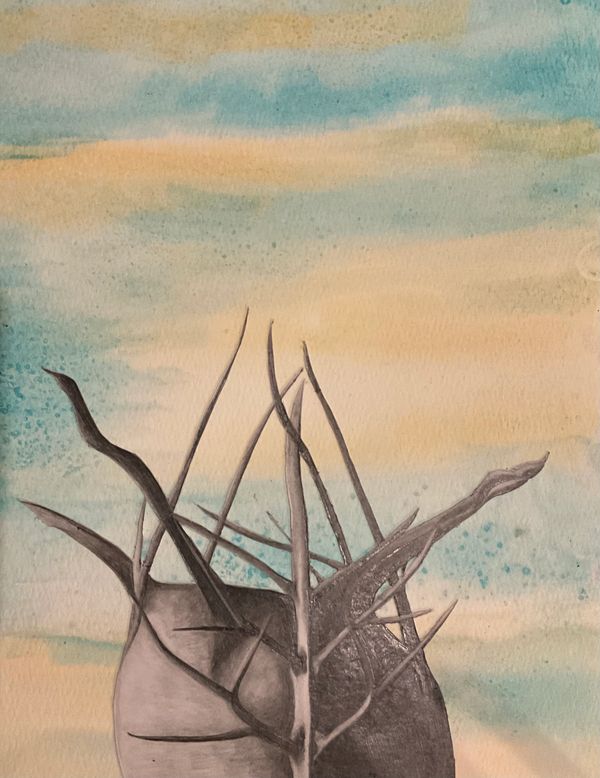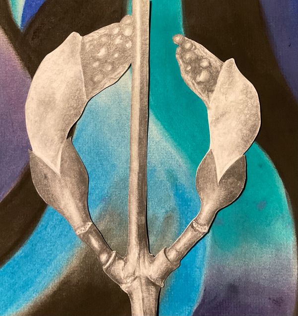 Soft pastel artwork inspired by Georgia O’Keefe. The pencil drawing is inspired by Karl Blossfeldt.