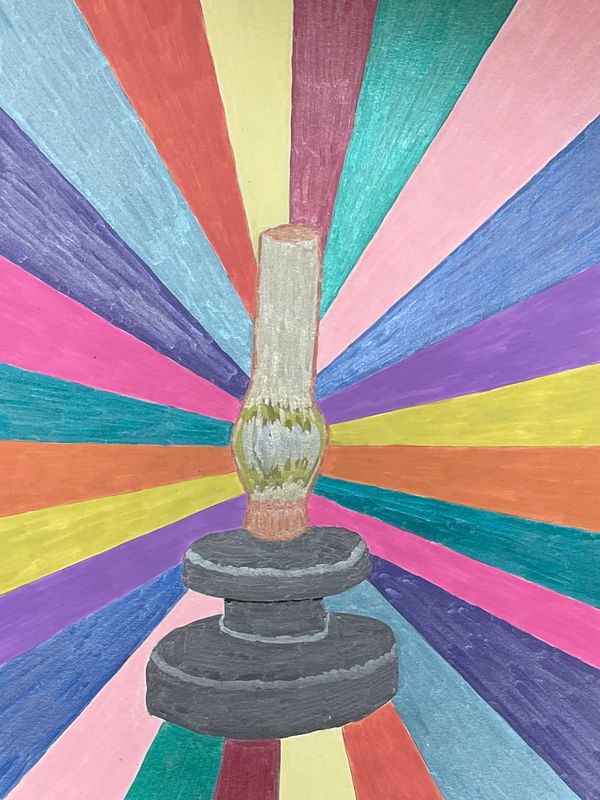 Pencil drawing on a painted acrylic design inspired by Georgia O’Keefe by Jan W.